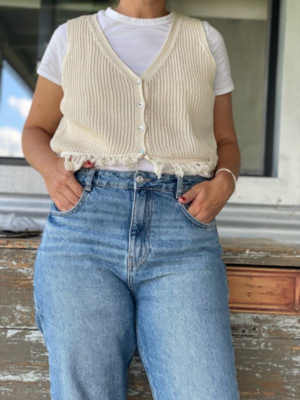 Chaleco 100% algodón peinado. Lindisimos para esta epoca! Es un modelo más bien corto para usar con jeans altos o con remera debajo! Súper canchero!